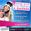- 3 séjours EASY THONON « 2 PASS avec une nuit en chambre 2 étoiles à choisir, petits déjeuners compris, et deux repas le midi ou le soir à choisir dans la liste de nos hébergeurs et de nos restaurateurs sous réserve de disponibilités. 2 forfaits de Ski journée, sous réserve de bonnes conditions météorologiques.» d’une valeur commerciale de 90 € TTC par séjour sur la base de deux personnes.