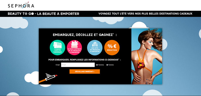 Pour le lancement de sa nouvelle trousse transparente Beauty to Go, la marque de produits de beautés Sephora met en ligne son Grand Jeu Sephora Beauty to Go pour vous faire découvrir « La beauté à emporter ».