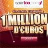 - J’usqu’à 1 million d’euro en bons d’achat à valoir une seule fois par adresse e-mail pendant les 48h qui suivent la participation sur le site www.spartoo.com. Chaque bon d’achat est valable une seule fois et non cumulable avec une autre offre promotionnelle en cours.